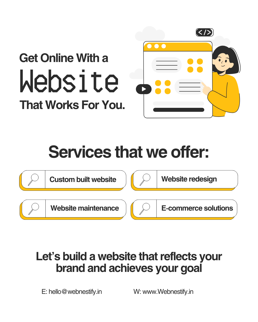 At Webnestify , we specialize in building websites that don’t just look good but also deliver measurable results. From custom-built solutions to e-commerce stores , our services are designed to help you get online with a website that truly works for you .