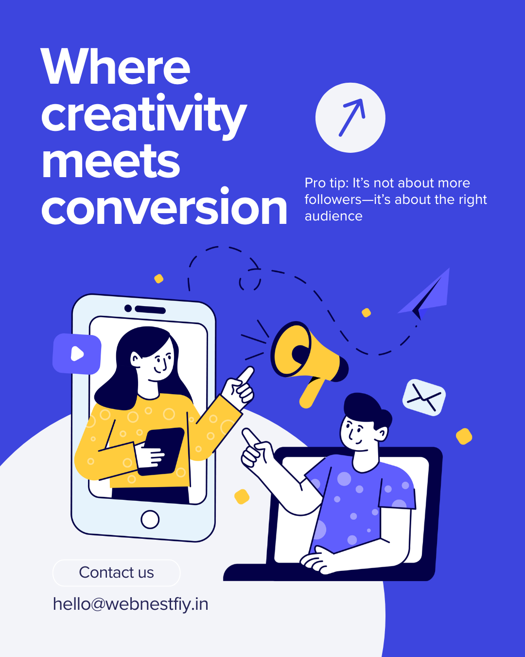 At Webnestify, we believe creativity should drive conversion. Our approach blends design, storytelling, and smart marketing strategies to help your brand attract not just more followers, but the right audience that converts.